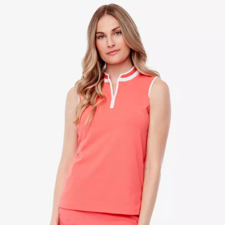 Swing Control PIQUE MOCK NECK SLEEVELESS SHIRT Coral