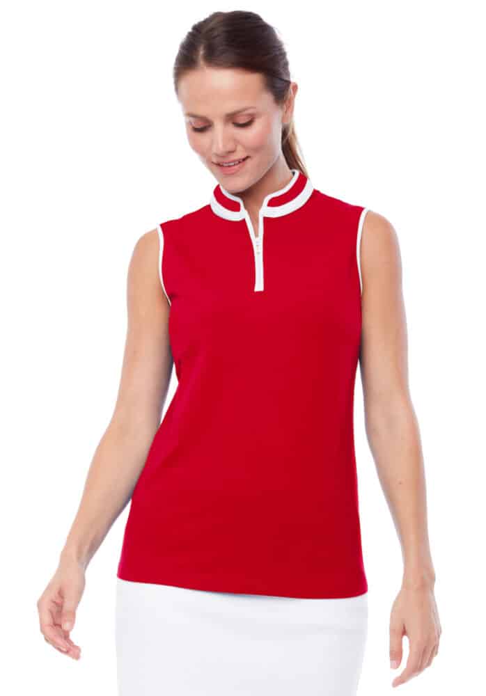 Swing Control PIQUE MOCK NECK SLEEVELESS SHIRT RED