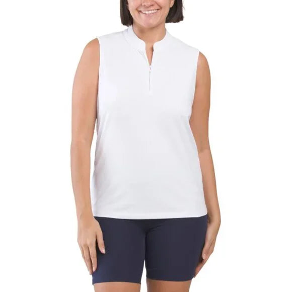 Swing Control PIQUE MOCK NECK SLEEVELESS SHIRT WHITE